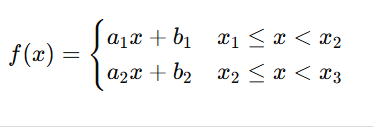 donde cada fi(x) es normalmente una función lineal o afín y cada Ii es un intervalo del dominio.