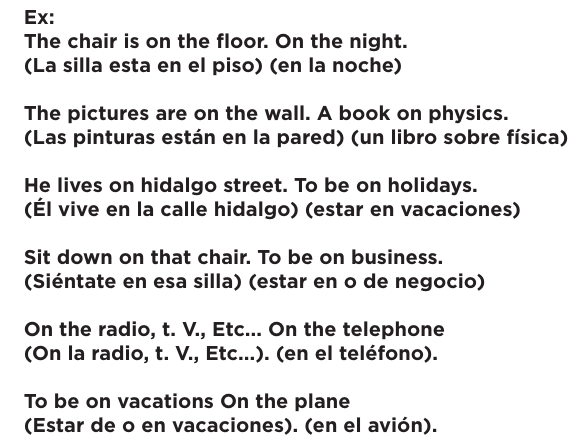 b) ) se usa para indicar contacto con una superficie ("sobre, encima de") y para denotar contexto (acerca de):