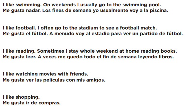 Los hobbies se pueden expresar en gustos y disgusto (likes and dislikes)